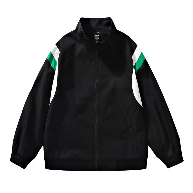 • Design: Stehkragen, Reißverschluss und Kontrastdetails an den Schultern.