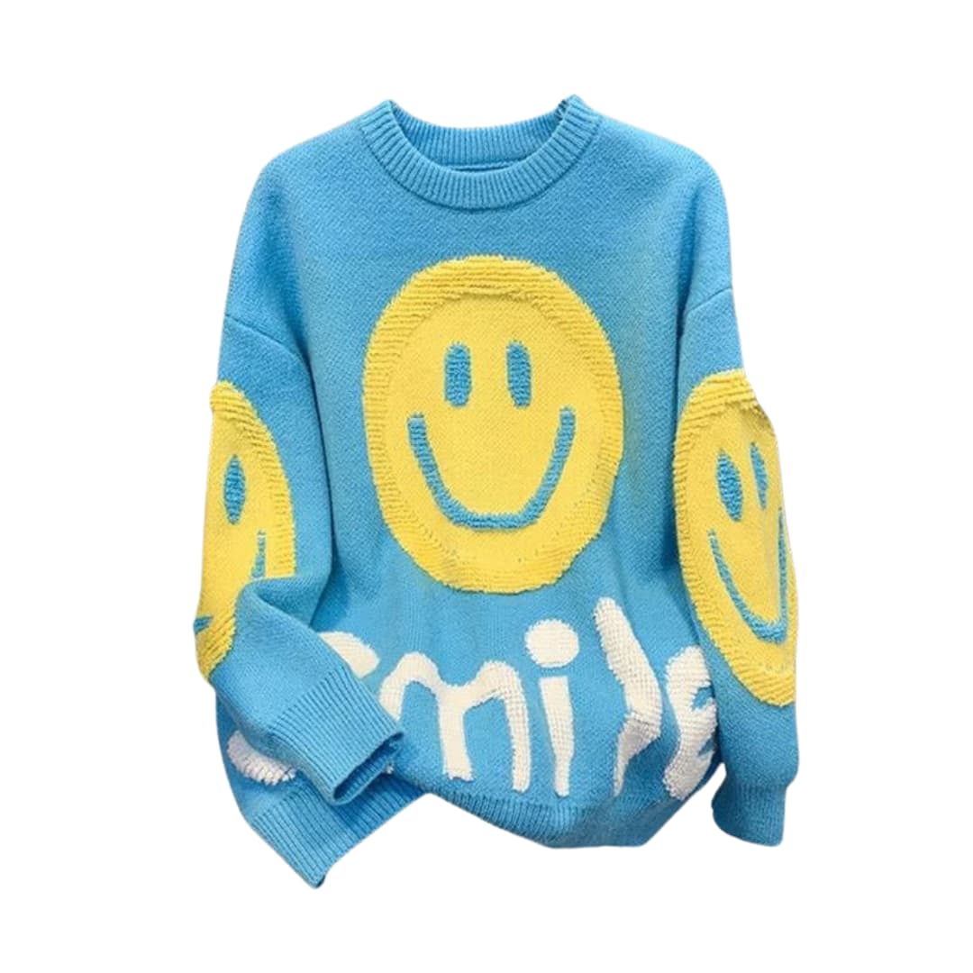 Bringen Sie Freude und Stil zusammen mit diesem fröhlichen Smiley-Pullover. Sein verspieltes Design fügt einen Hauch von Spaß hinzu und macht es zum perfekten Teil für alle, die ihr Outfit aufhellen und gleichzeitig gemütlich bleiben möchten.