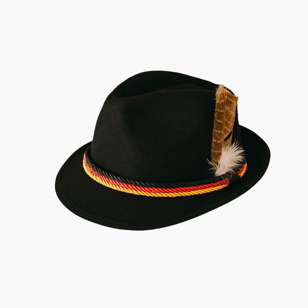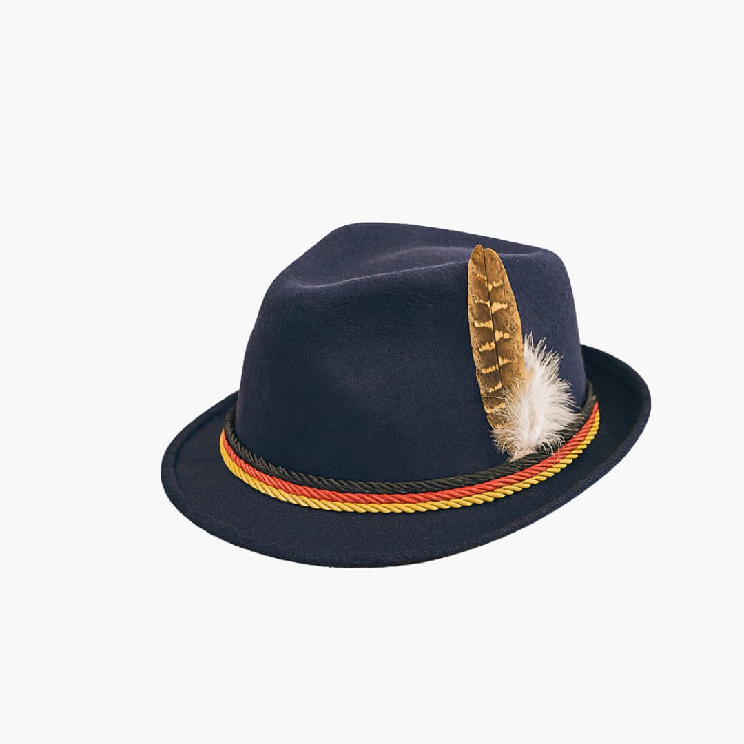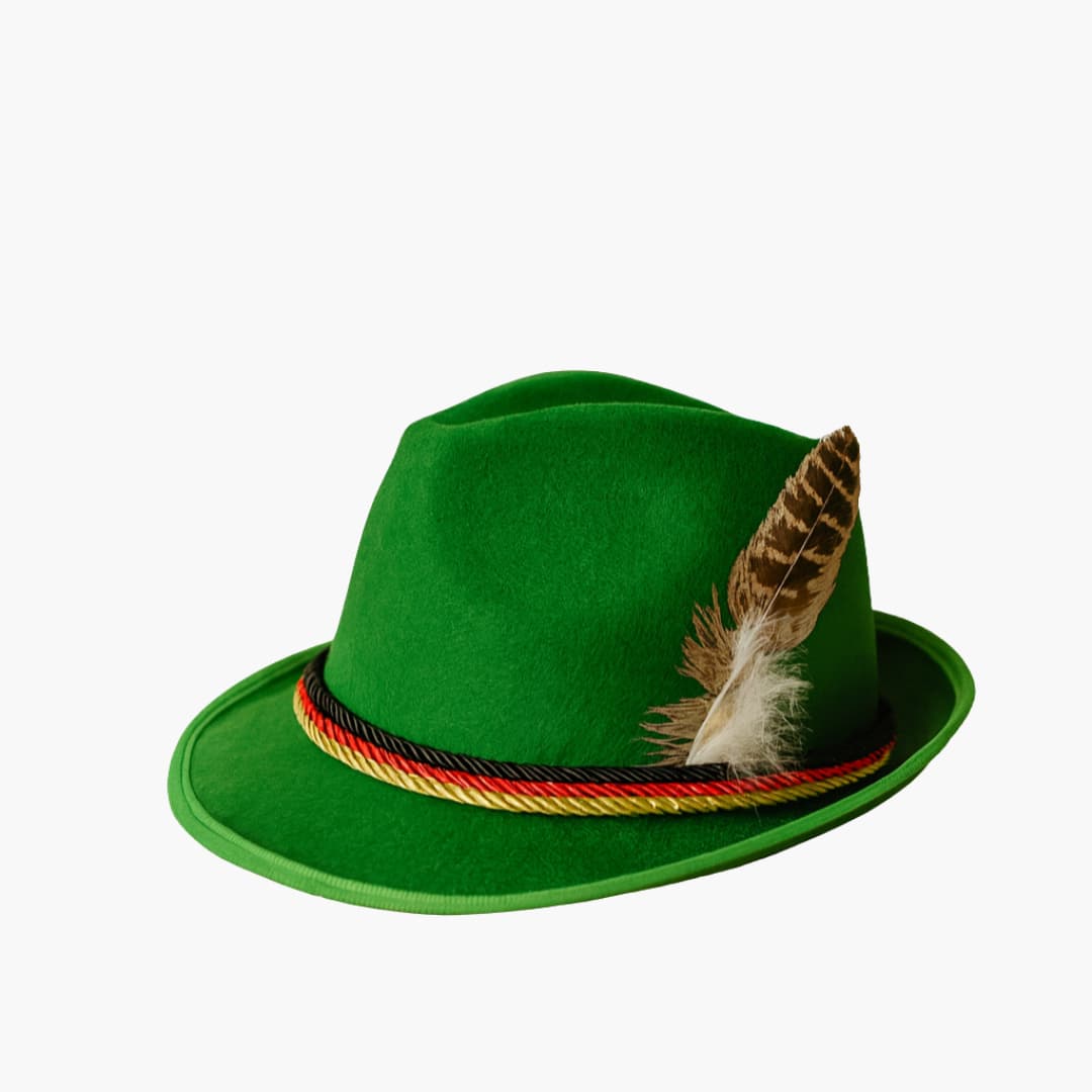 Ein klassischer Kopfschmuck im bayerischen Trachtenstil mit charakteristischer Form und dekorativer Feder. Geeignet für Herren, die bei Festen wie dem Oktoberfest oder anderen kulturellen Anlässen ein passendes Accessoire tragen möchten. Die formstabile Struktur sorgt für eine gleichbleibende Form während des Tragens.