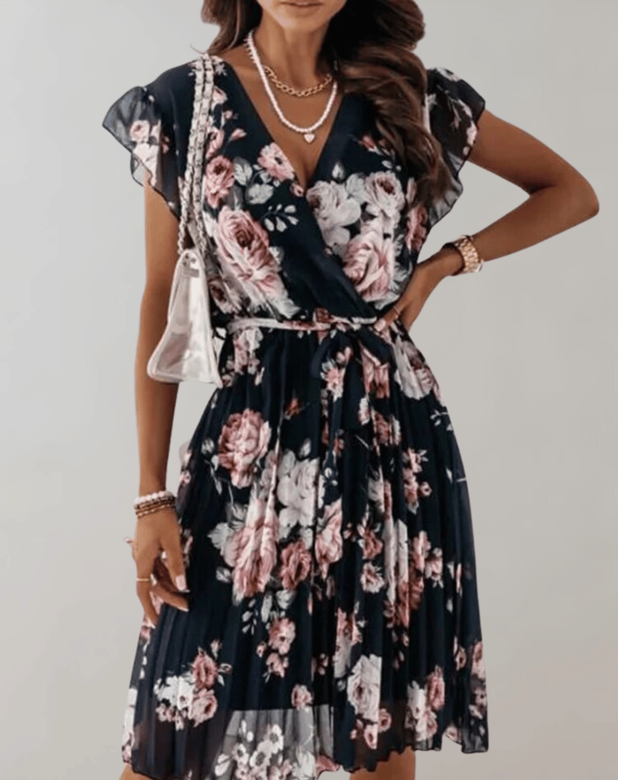 Dieses Clara Blumendress ist eine vielseitige und stilvolle Ergänzung für Ihre Garderobe. Mit seinem auffälligen Blumenmuster verleiht dieses kurzärmelige Kleid jedem Outfit eine Prise lebendige Eleganz.