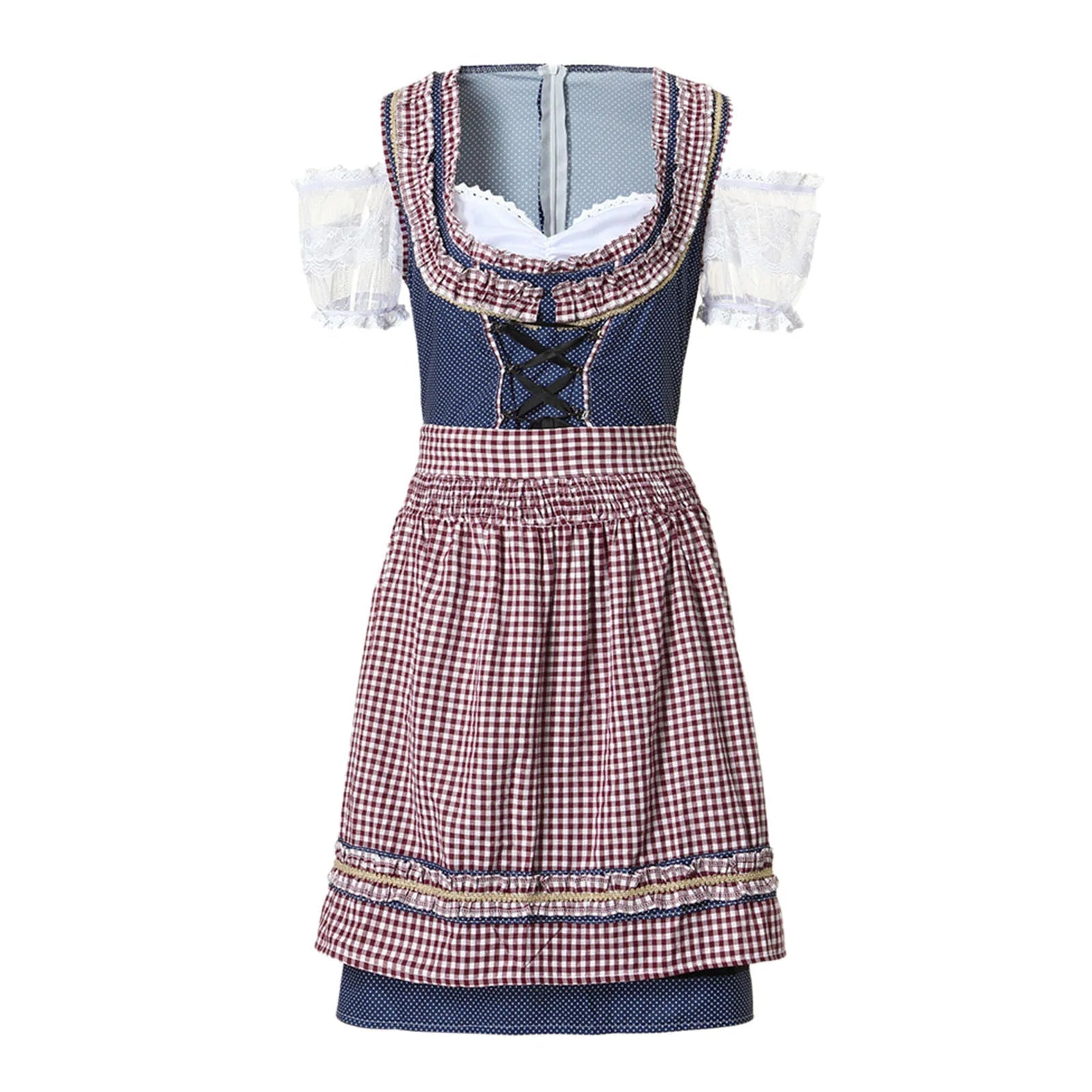 Damen Dirndlkleid Baumwolle Traditionell Modernes Karomuster