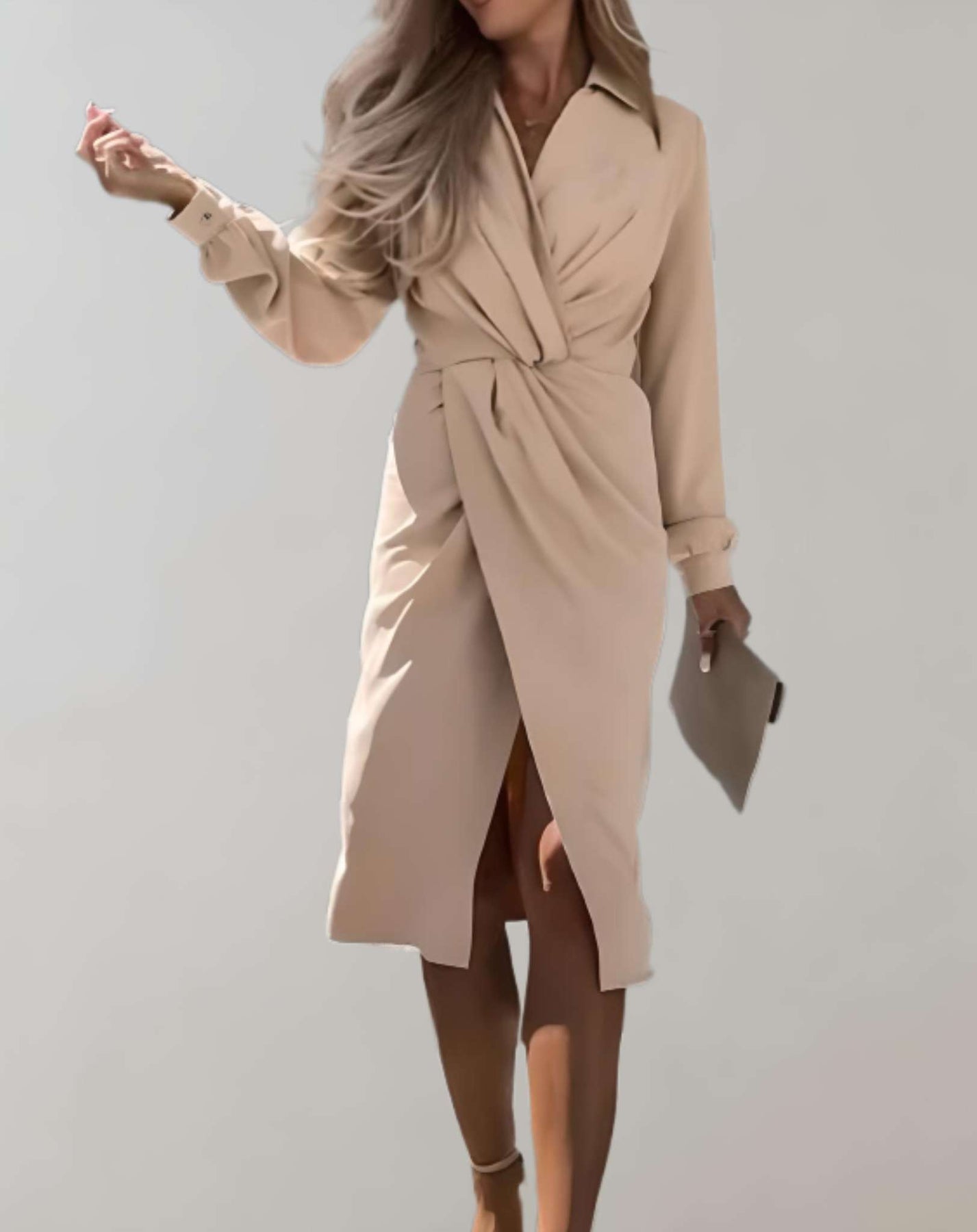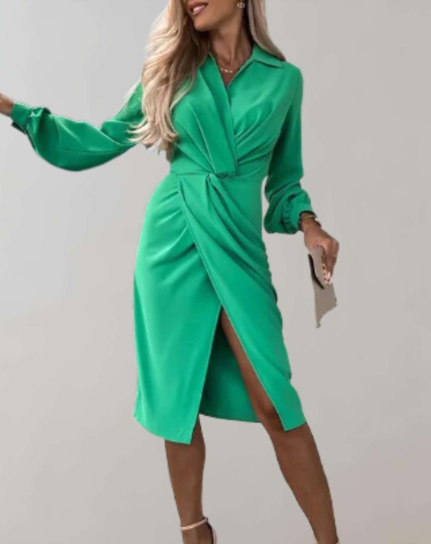 Darlene - Schön sitzendes Kleid mit hohem Schlitz und langen Ärmeln Kleid