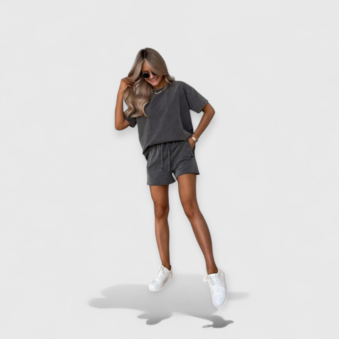 Entdecken Sie die perfekte Kombination aus Chic und Komfort mit unserem meistverkauften Eden-Zweiteiler. Entworfen für die moderne Frau, die Stil ebenso schätzt wie Bequemlichkeit, fällt dieses Outfit wunderschön und bietet einen weichen Touch, der mit Ihnen mitgeht. Ideal für entspannte Wochenenden, spontane Kurzurlaube oder einfach zum stilvollen Entspannen.