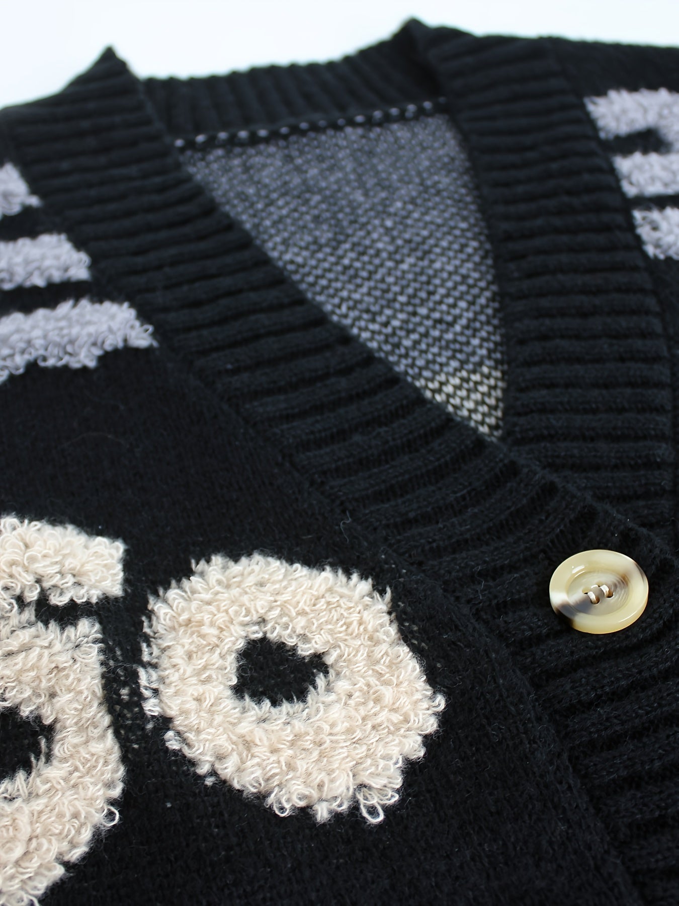 Stilvolle Buchstabenmuster Strickjacke Für Damen | Ideal für den Alltag