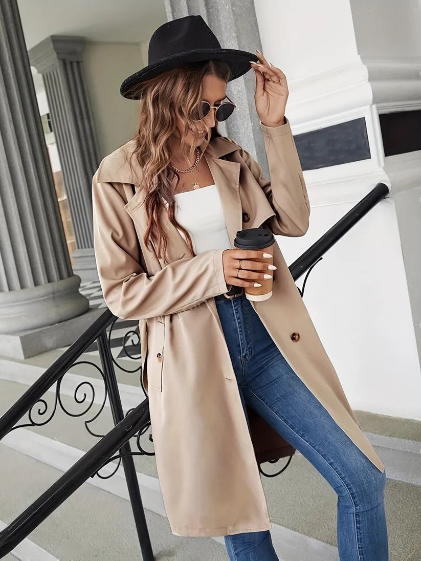 Wähle dieses stilvolle Trenchcoat aus Kunstleder, das nicht nur deinen Körper umschmeichelt, sondern auch deine Persönlichkeit zum Strahlen bringt. Mit seinem eleganten Vintage-Ärmeldesign und dem modischen Gürtel wirst du spürbar die Blicke auf dich ziehen – egal zu welcher Jahreszeit. Dieses Trenchcoat ist mehr als nur ein Kleidungsstück; es ist eine Einladung, mit einem selbstbewussten Schritt durch den Tag zu gehen, sei es bei einem Treffen mit Freunden oder einem wichtigen Büroanlass. Lass dich von der Vielseitigkeit und dem zeitlosen Charme dieses Modells begeistern, der zum Must-Have jeder modischen Garderobe wird.