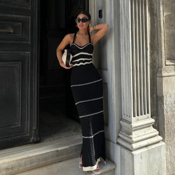 Dieses elegante Strick-Maxikleid mit kunstvollen Häkelmustern ist ein echter Hingucker. Die figurbetonte Silhouette und der raffinierte Rückenausschnitt setzen Ihre Kurven perfekt in Szene. Perfekt für sommerliche Events, Dinner-Dates oder einen stilvollen Urlaubslook.