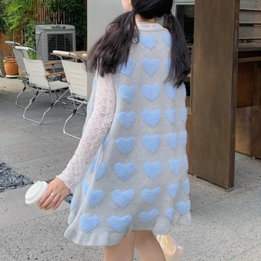 Diese bezaubernde Strickweste mit Herzmotiv ist ein echtes Highlight für verspielte und romantische Looks. Die lockere Passform sorgt für ein angenehmes Tragegefühl, während die flauschigen Herzdetails einen verspielten Akzent setzen. Perfekt für einen niedlichen und trendigen Auftritt!