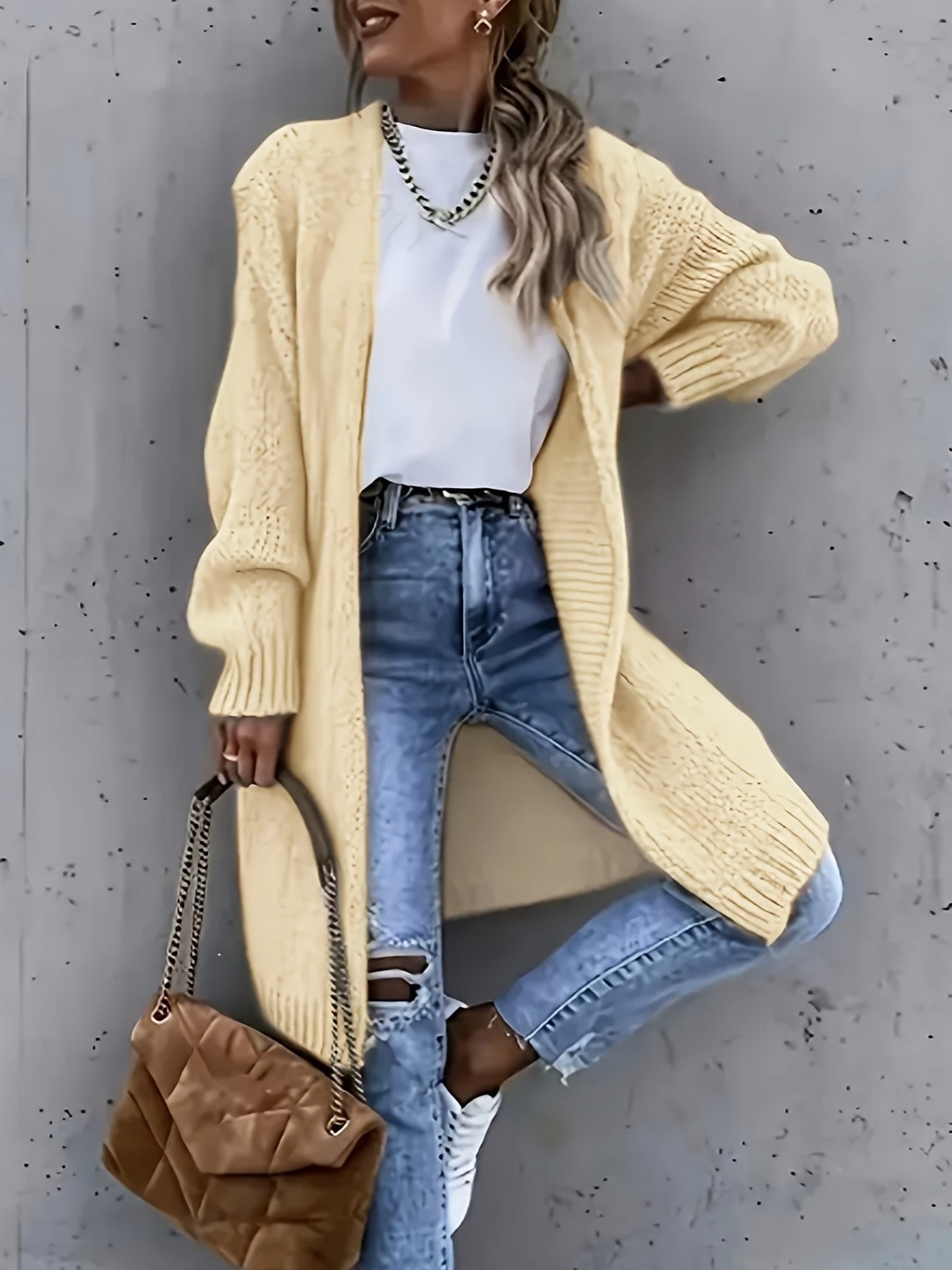 Warme Lange Einfarbige Gestrickte Strickjacke Für Damen | Ideal für Herbst und Winter