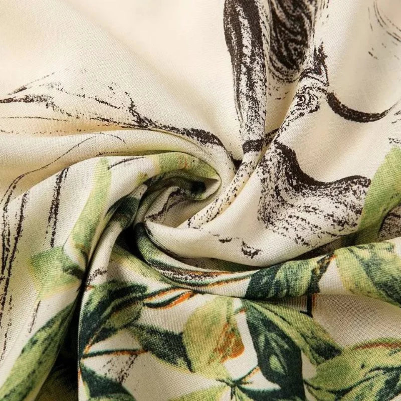 - Allover-Blumenmuster: Sorgt für natürliche Eleganz mit tropischem Flair.
