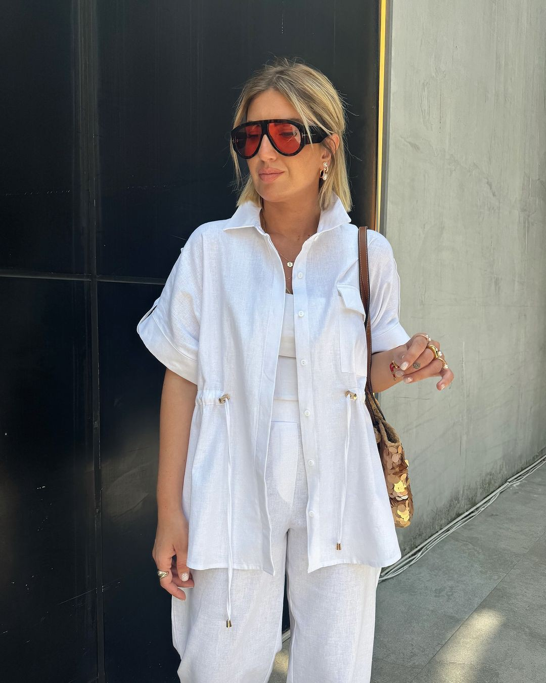 Styling-Tipp: Kombinieren Sie das Set mit Sandalen und einer Korbtasche für einen lässigen Sommerlook oder tragen Sie es mit Loafern für eine elegante Note.